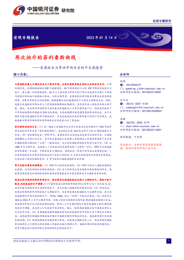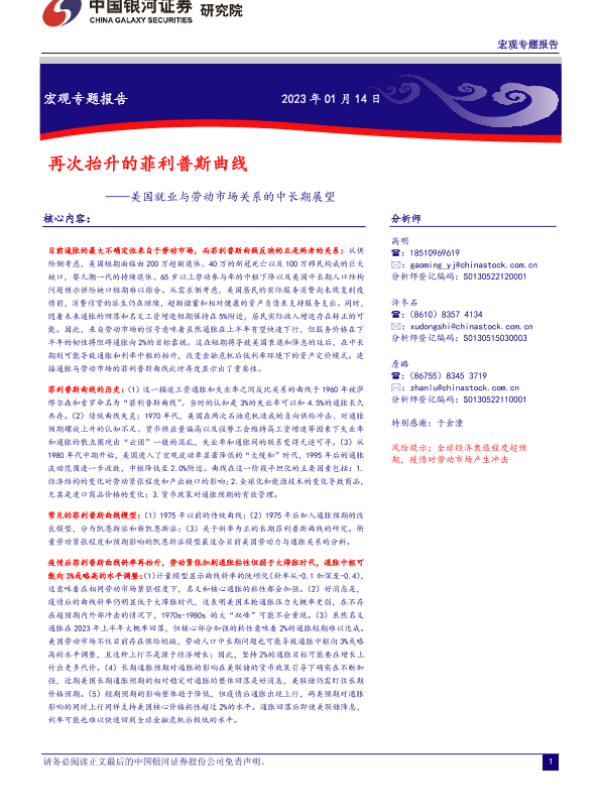 【银河证券】【20230114】美国就业与劳动市场关系的中长期展望:再次抬升的菲利普斯曲线-16页