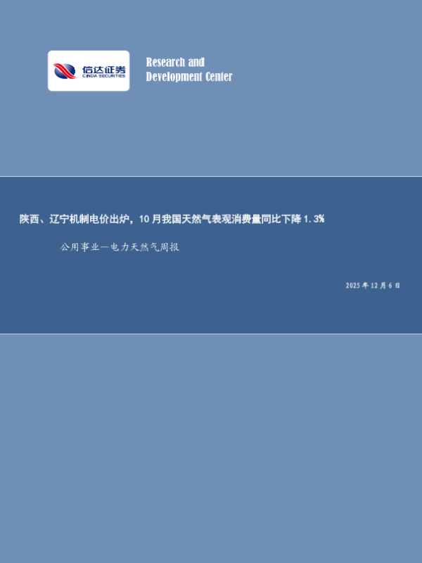【信达证券股份有限公司 CINDA SECURITIES CO.,LTD】【202512】陕西、辽宁机制电价出炉,10月我国天然气表观消费量同比下降1.3%-20页