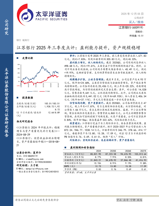 【太平洋证券】【202512】江苏银行2025年三季度点评:盈利能力提升,资产规模稳增-3页