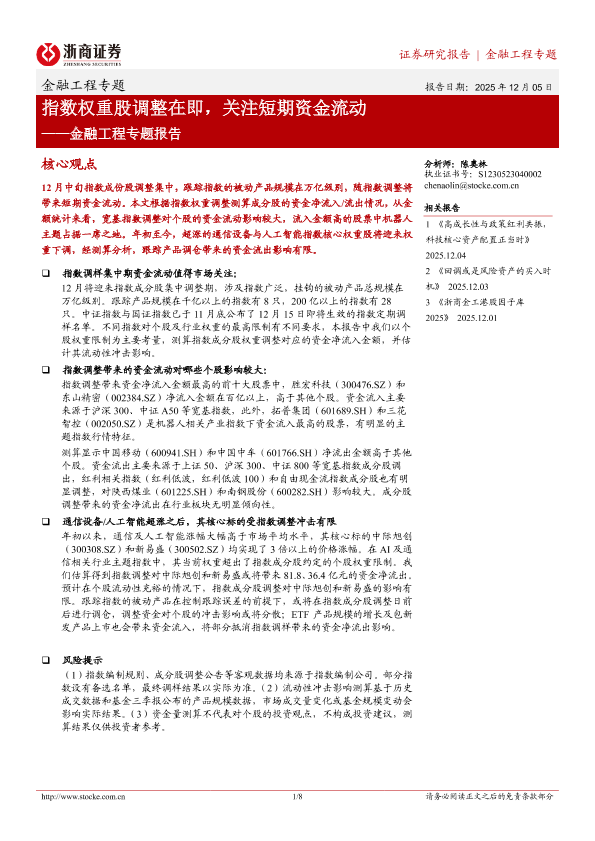 【浙商证券】【202512】指数权重股调整在即,关注短期资金流动-8页