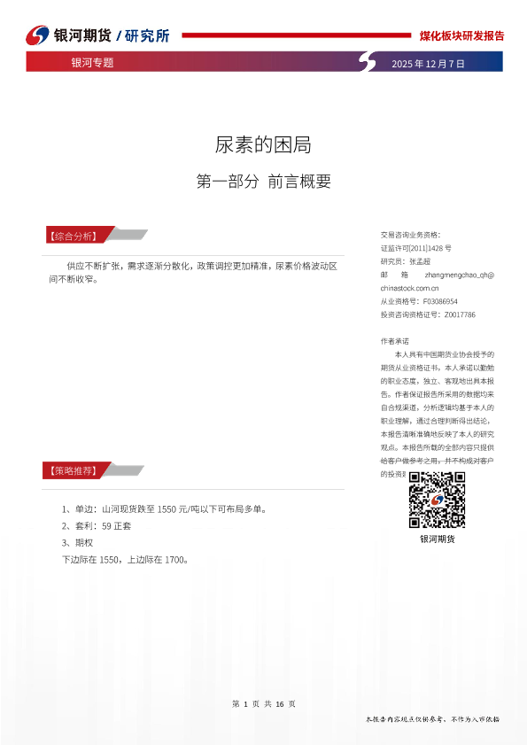 【银河期货】【202512】尿素的困局-16页