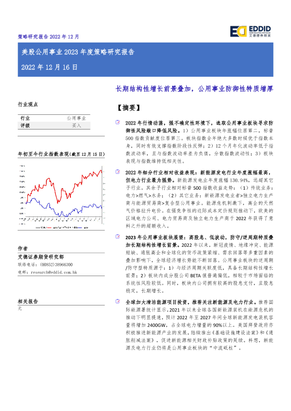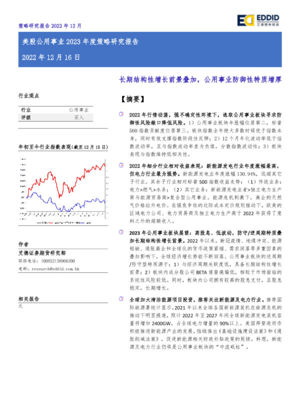 【艾德证券期货】【20221216】美股公用事业行业2023年度策略研究报告:长期结构性增长前景叠加,公用事业防御性特质增厚-16页