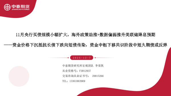 【中泰期货】【202512】11月央行买债规模小幅扩大_海外政策助推+数据偏弱推升美联储降息预期——资金价格下沉抵抗长债下跌向短债传染_资金中枢下移共识阶段中短久期债或反弹-54页