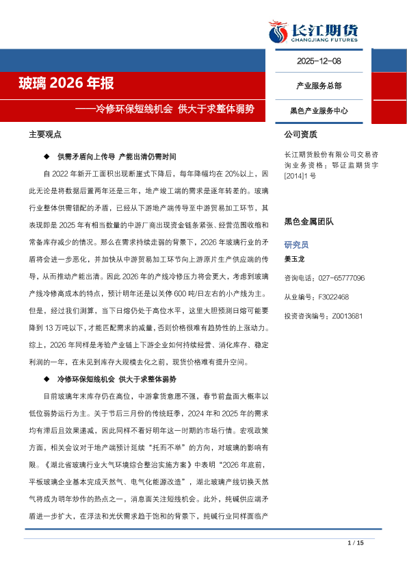 【长江期货】【2025】玻璃2026年报——冷修环保短线机会供大于求整体弱势-15页