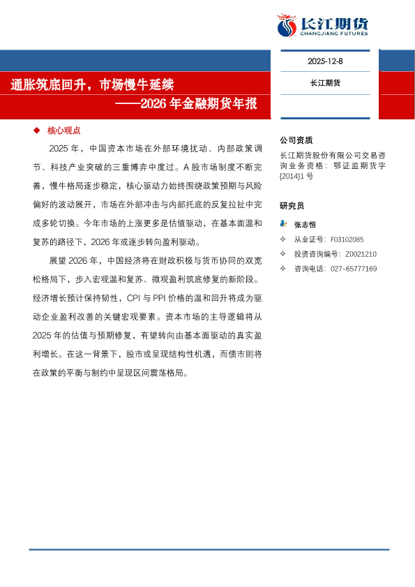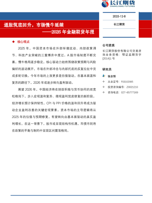 【长江期货】【2026】通胀筑底回升,市场慢牛延续——2026年金融期货年报-22页