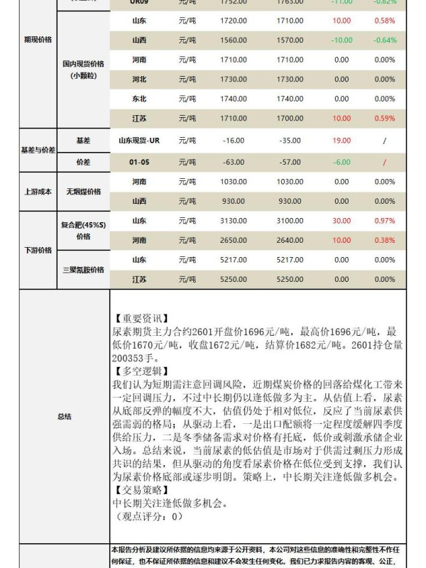 化工品 市场预测 尿素 农产品 期货分析