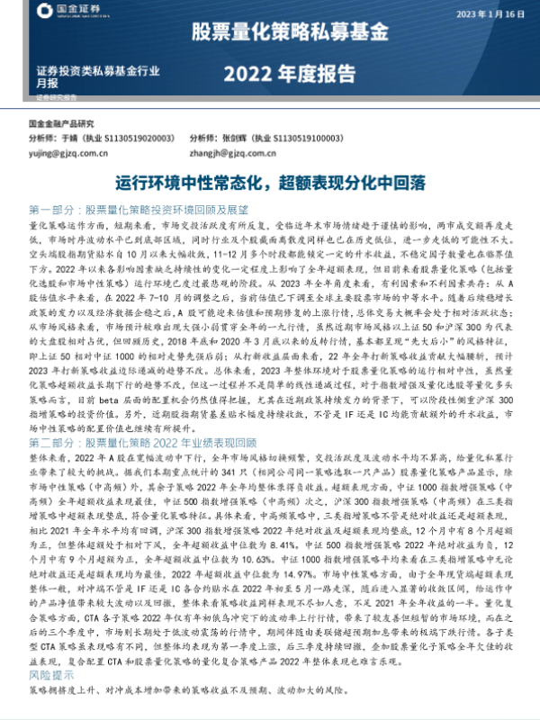 【国金证券】【20230116】股票量化策略私募基金2022年度报告:运行环境中性常态化,超额表现分化中回落-19页