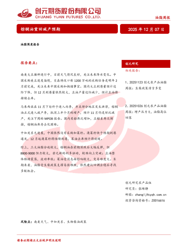 【创元研究】【202512】油脂周报-20页