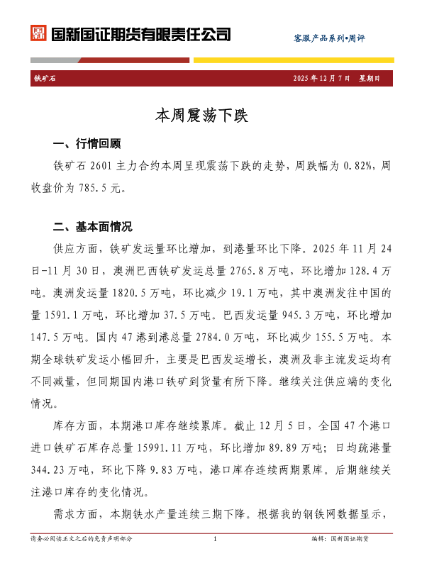 【国新国证期货有限责任公司】【202512】本周震荡下跌-3页