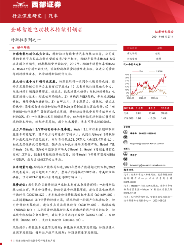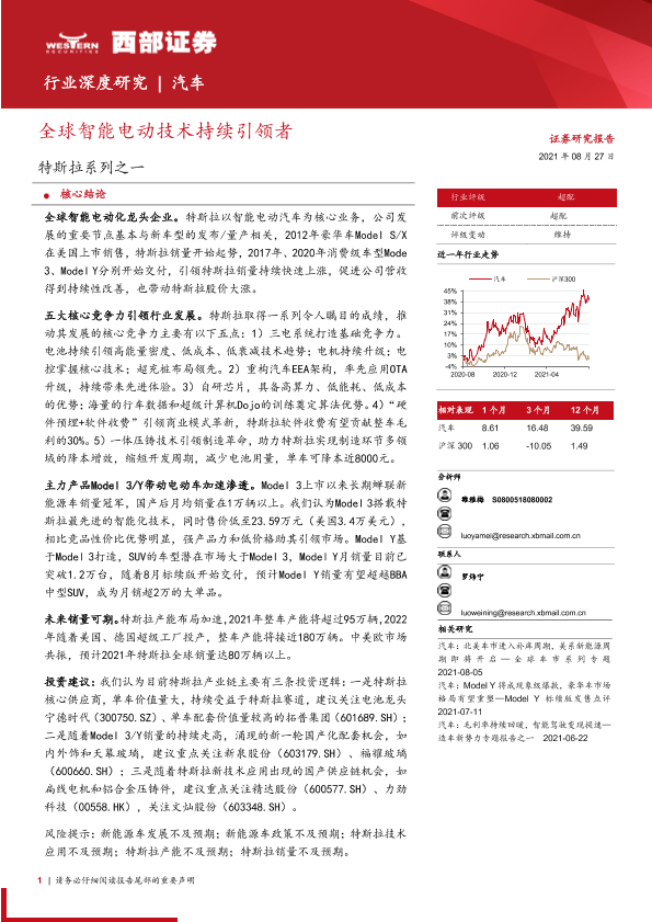 【西部证券】【20210827】汽车行业特斯拉系列之一:全球智能电动技术持续引领者-43页
