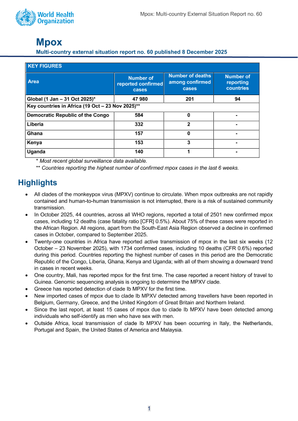 【世界卫生组织】【202512】Multi-country outbreak of mpox, External situation report #60 - 8 December 2025-11页