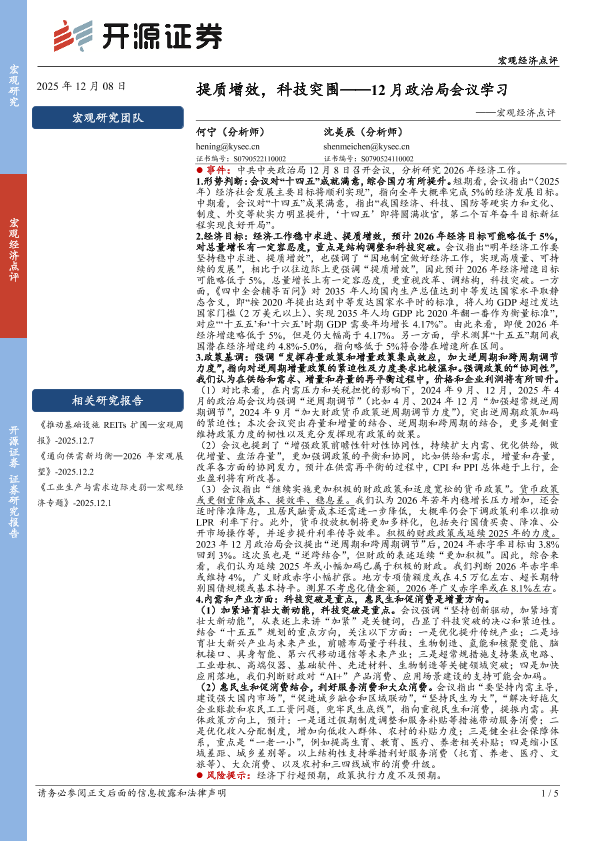 【开源证券】【202512】提质增效,科技突围——12月政治局会议学习——宏观经济点评-5页