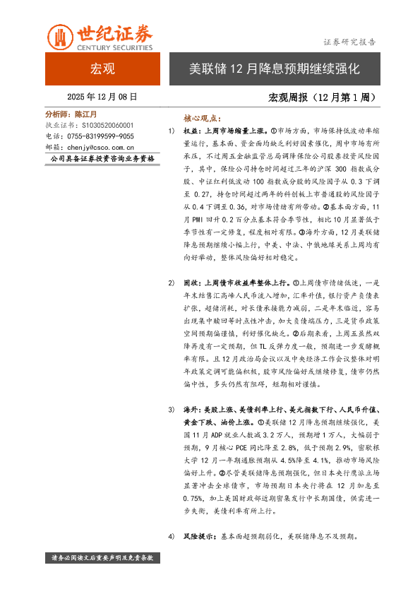 降息预期 货币政策 美联储 宏观周报 债券市场