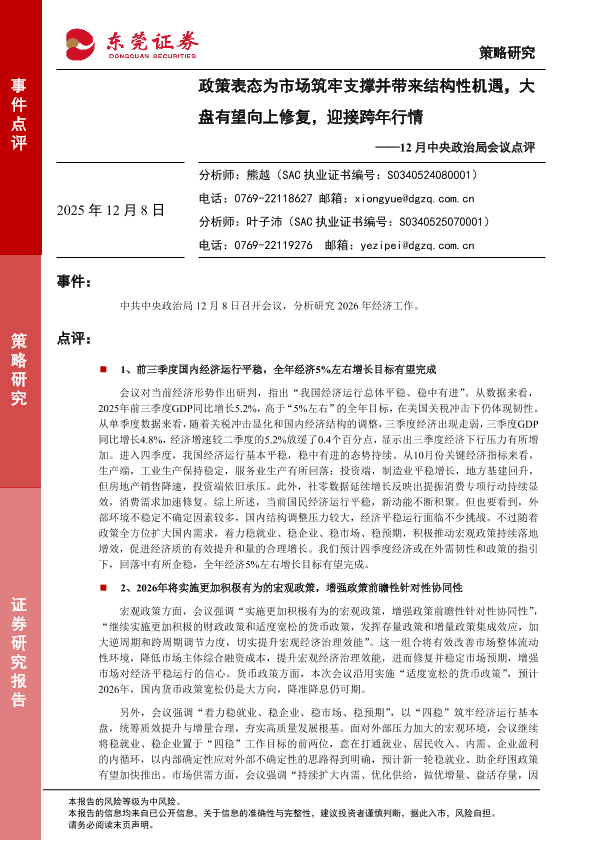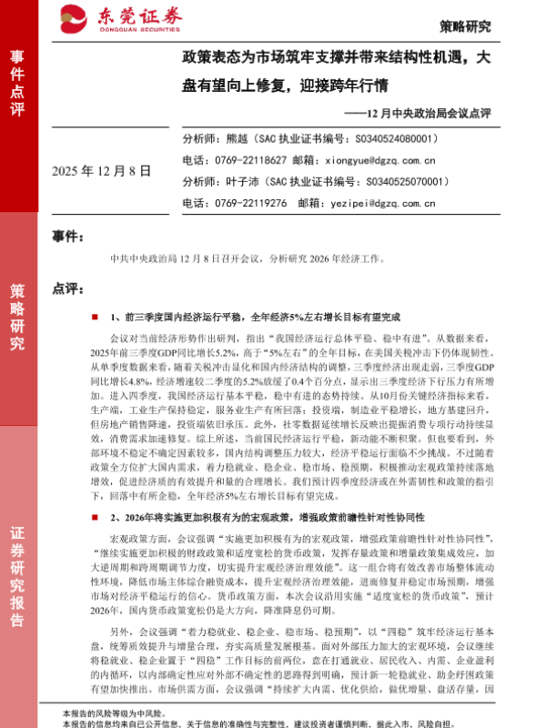 【东莞证券】【202512】政策表态为市场筑牢支撑并带来结构性机遇,大盘有望向上修复,迎接跨年行情-5页
