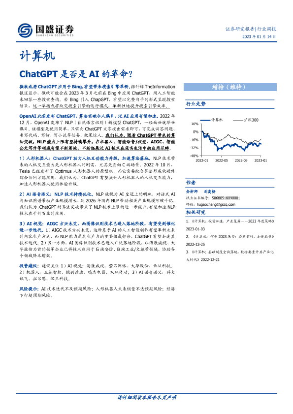 【国盛证券】【20230114】计算机行业周报:ChatGPT是否是AI的革命?-18页