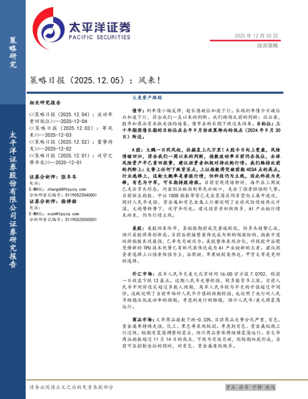 【太平洋证券】【202512】策略日报(2025.12.05):风来!-12页