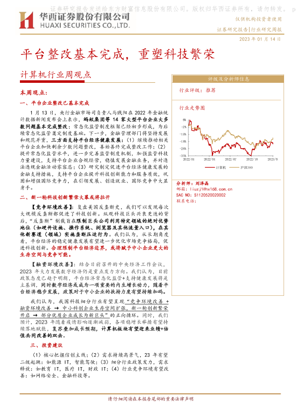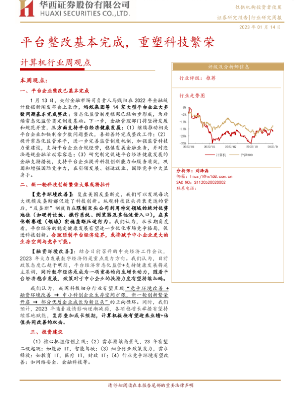 【华西证券】【20230114】计算机行业周观点:平台整改基本完成,重塑科技繁荣-24页