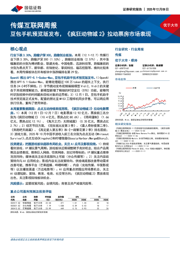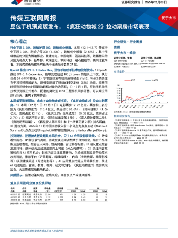 【国信证券】【202512】2025年12月08日 传媒互联网周报:豆包手机预览版发布,《疯狂动物城2》拉动票房市场表现-13页