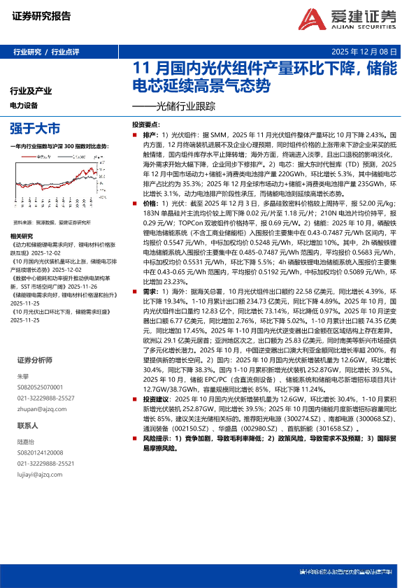 【爱建证券】【202512】11月国内光伏组件产量环比下降,储能电芯延续高景气态势-9页