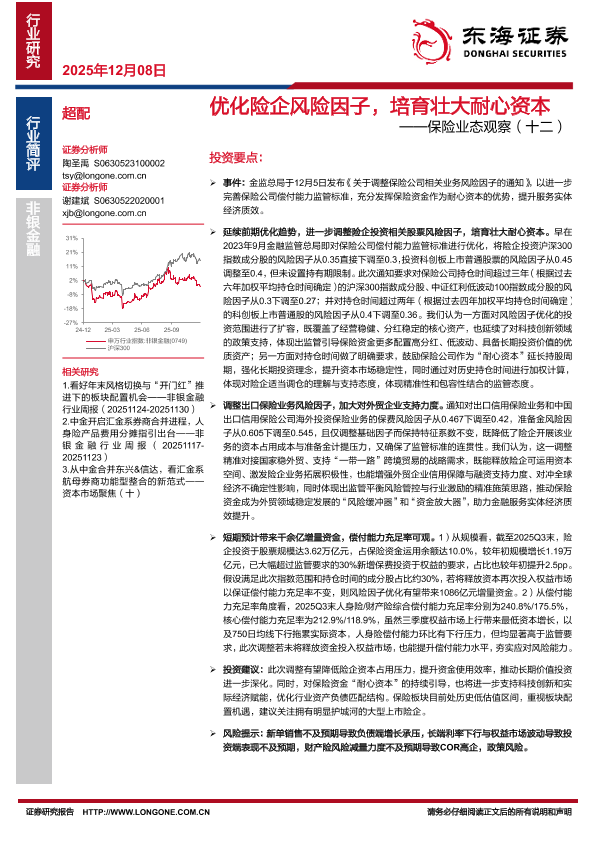 【东海证券】【202512】优化险企风险因子,培育壮大耐心资本——保险业态观察(十二)-3页