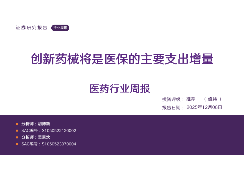 【华鑫证券】【202512】创新药械将是医保的主要支出增量医药行业周报-32页