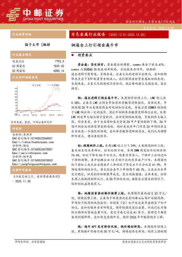 【中邮证券】【202512】有色金属行业周报:铜逼仓上行引领金属牛市-12页