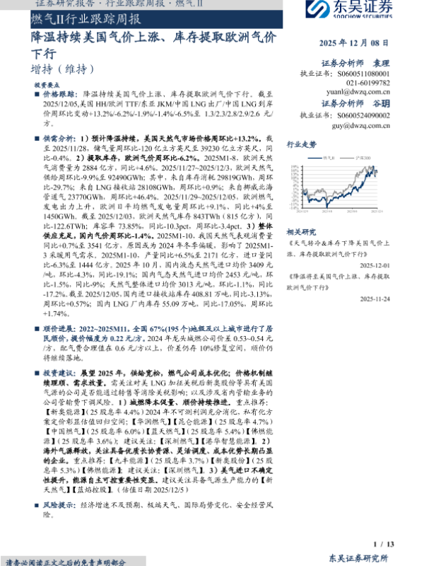 【东吴证券】【202512】燃气Ⅱ行业跟踪周报·降温持续美国气价上涨、库存提取欧洲气价下行-13页