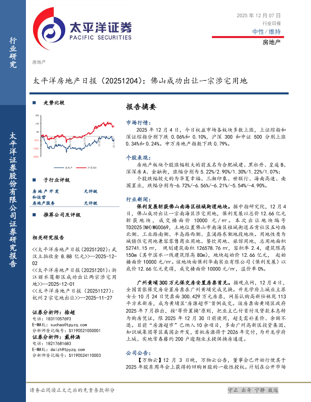 【太平洋证券】【202512】太平洋房地产日报(20251204):佛山成功出让一宗涉宅用地-4页