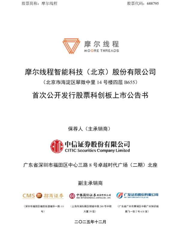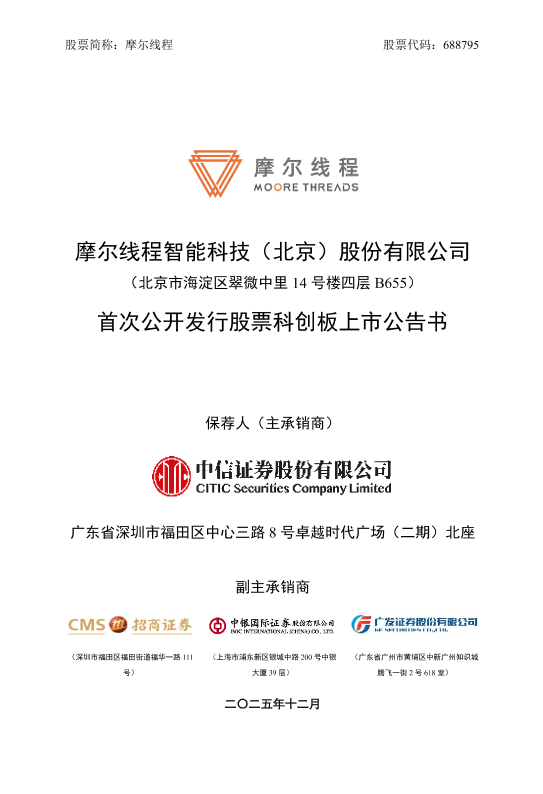 【摩尔线程智能科技(北京)股份有限公司】【202512】摩尔线程智能科技(北京)股份有限公司首次公开发行股票科创板上市公告书-99页