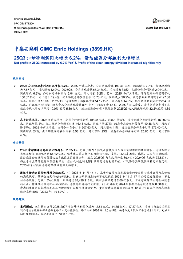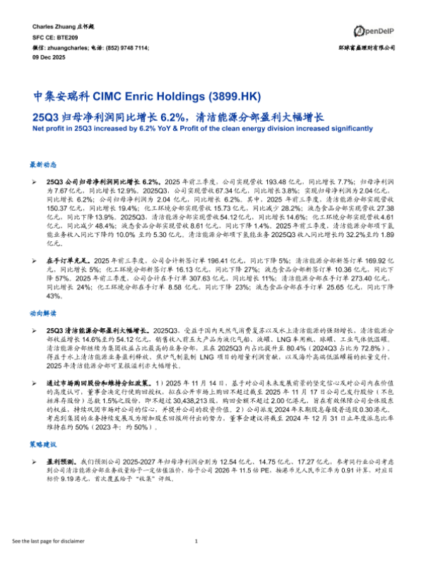【环球富盛理财有限公司】【202512】25Q3归母净利润同比增长6.2%,清洁能源分部盈利大幅增长-10页