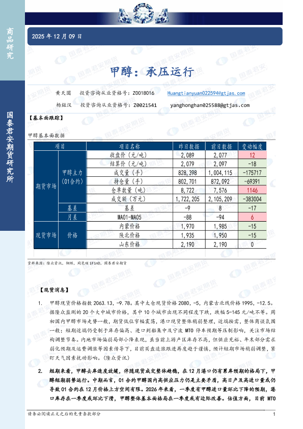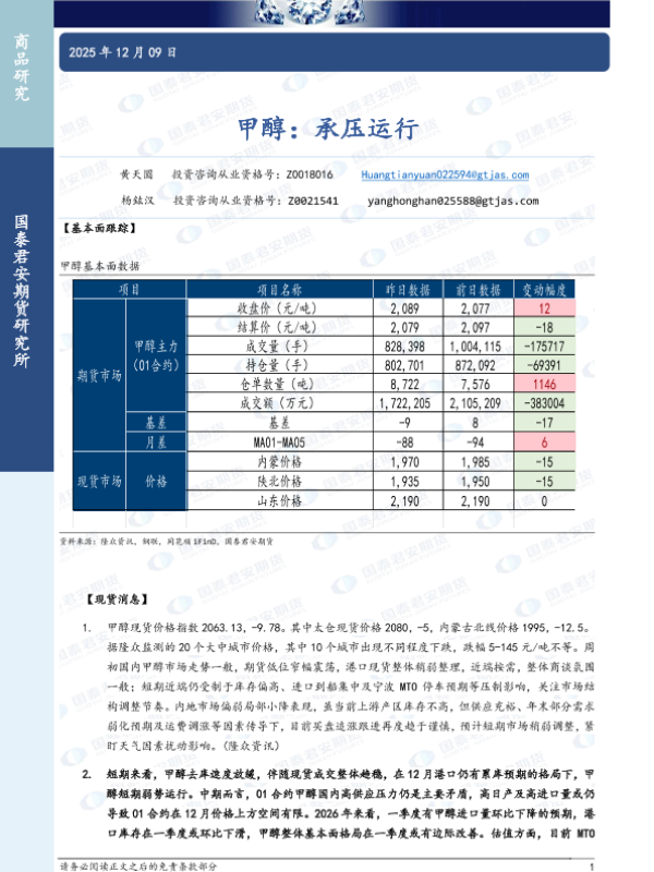 【国泰君安期货】【202512】甲醇:承压运行-3页
