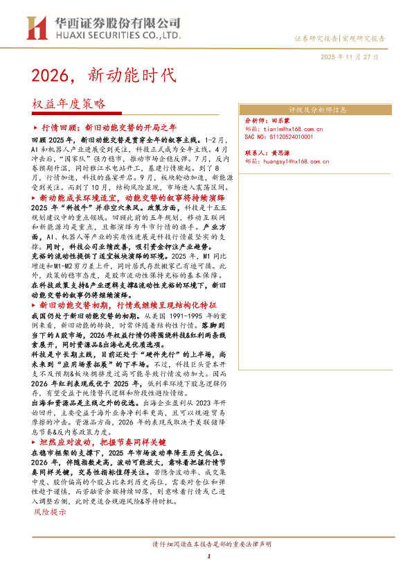 【华西证券】【202511】权益年度策略_2026_新动能时代-30页