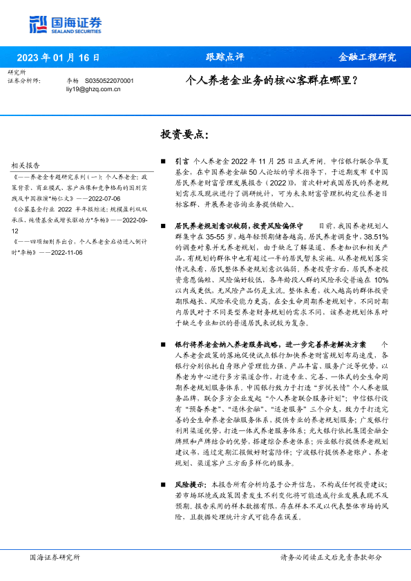 【国海证券】【20230116】跟踪点评:个人养老金业务的核心客群在哪里?-15页