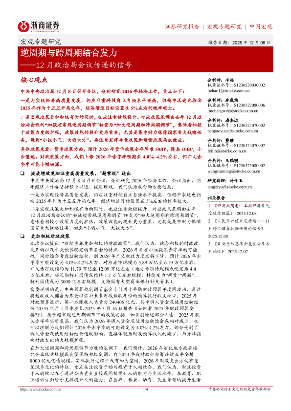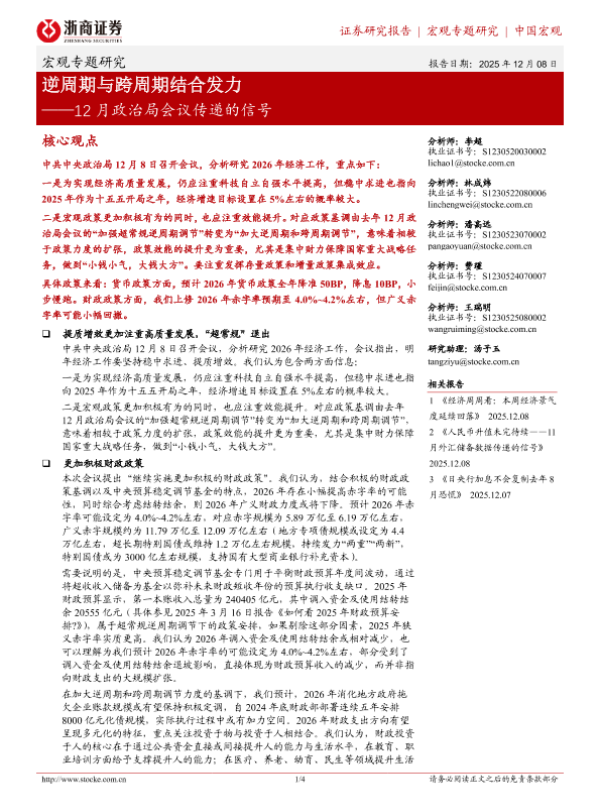 【浙商证券】【202512】逆周期与跨周期结合发力 12月政治局会议传递的信号-4页