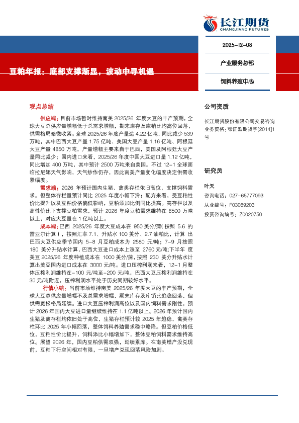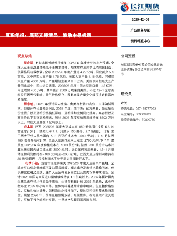 【长江期货】【202512】豆粕年报:底部支撑渐显,波动中寻机遇-11页