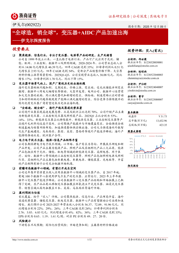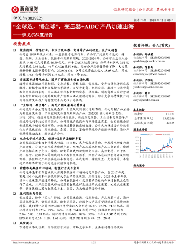 【浙商证券】【202512】“全球造,销全球”,变压器+AIDC产品加速出海——伊戈尔深度报告-32页