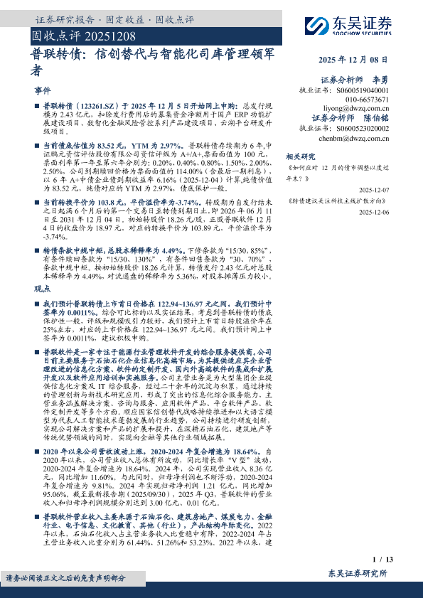 【东吴证券】【202512】普联转债:信创替代与智能化司库管理领军者-13页