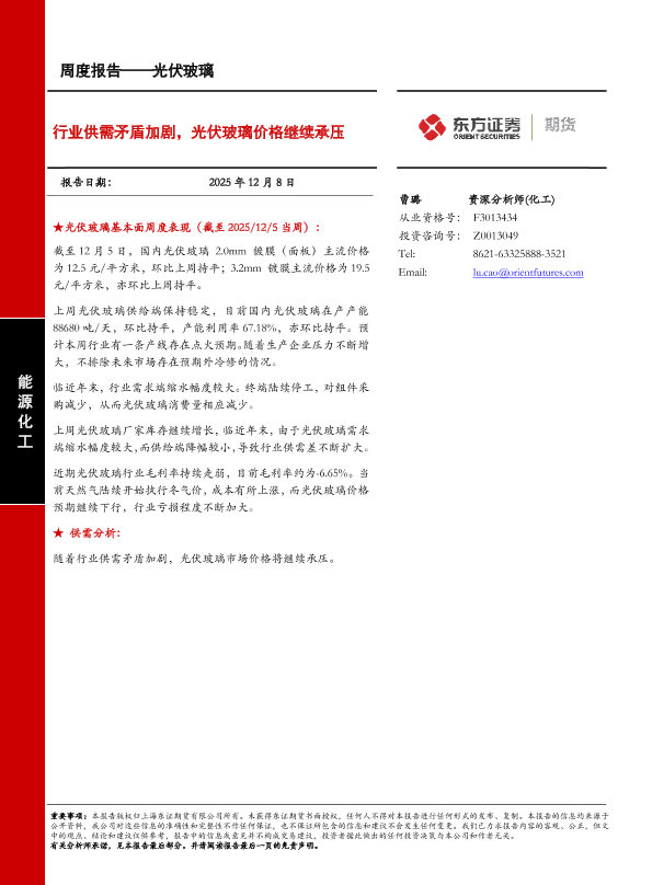 【东证期货】【202512】光伏玻璃周度报告_行业供需矛盾加剧_光伏玻璃价格继续承压-9页