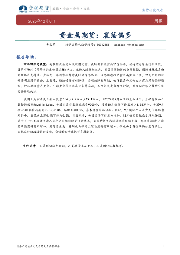 【宁证期货】【202512】贵金属期货:震荡偏多-6页