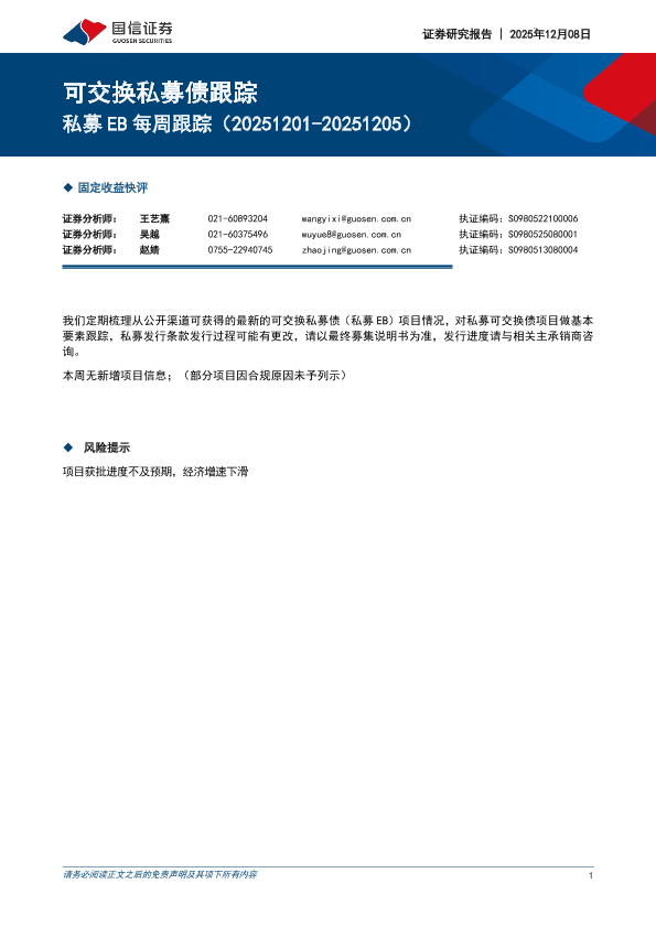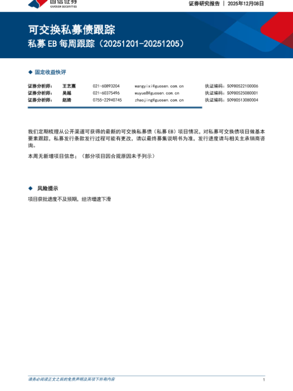 【国信证券】【202512】可交换私募债跟踪-私募 EB每周跟踪-4页