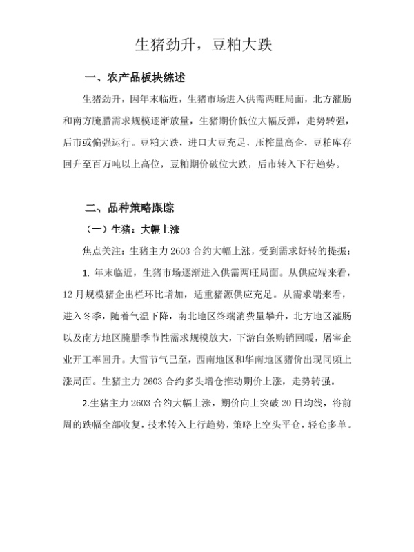 【天富期货有限公司】【202512】生猪劲升,豆粕大跌-9页