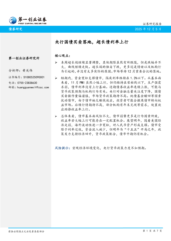 【第一创业证券】【202312】央行国债买卖落地,超长债利率上行-7页