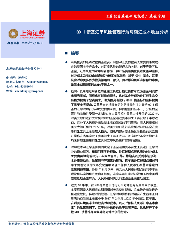 【上海证券】【202512】QD II债基汇率风险管理行为与锁汇成本收益分析-12页