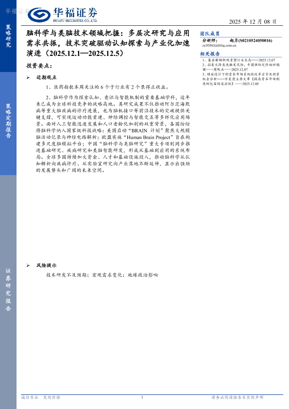 【华福证券】【202512】脑科学与类脑技术领域把握:多层次研究与应用需求共振,技术突破驱动认知探索与产业化加速演进-8页
