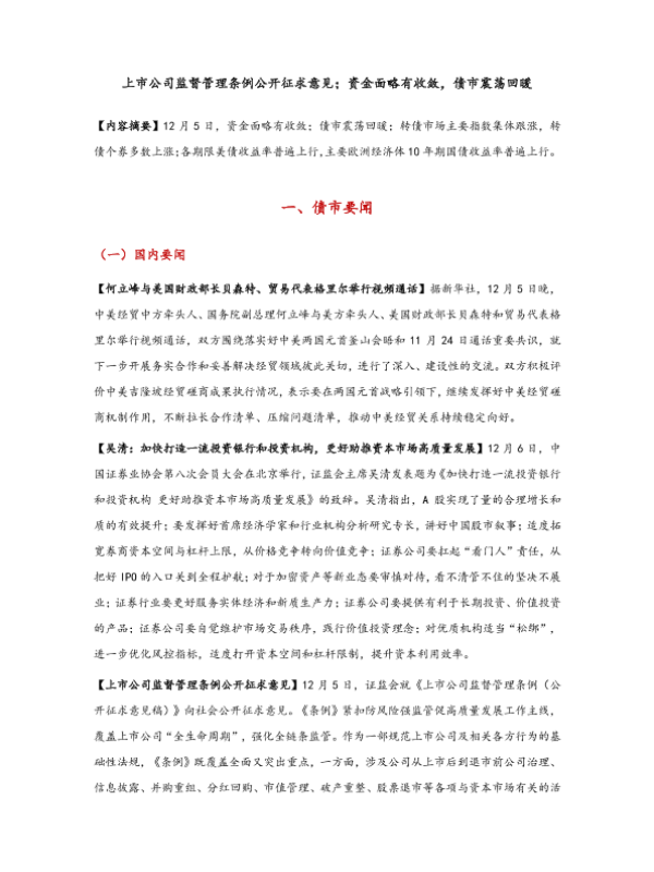 【东方金诚】【202512】上市公司监督管理条例公开征求意见;资金面略有收敛_债市震荡回暖-8页