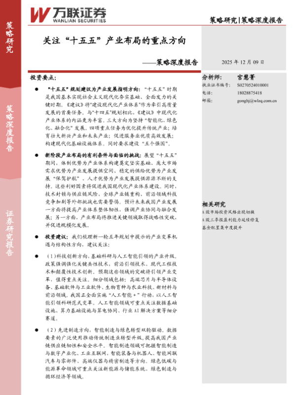 【万联证券】【202512】“十五五”产业布局的重点方向-19页
