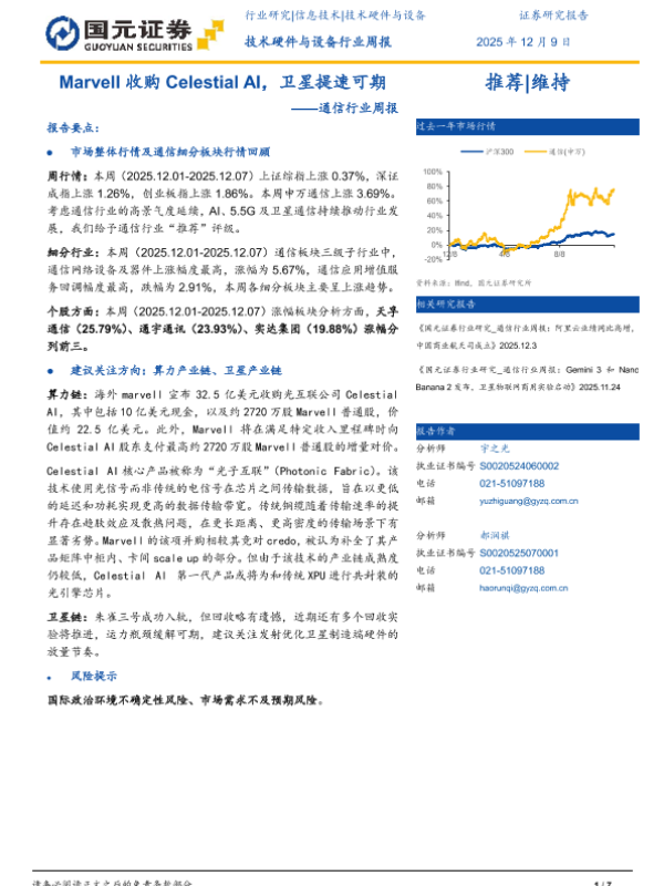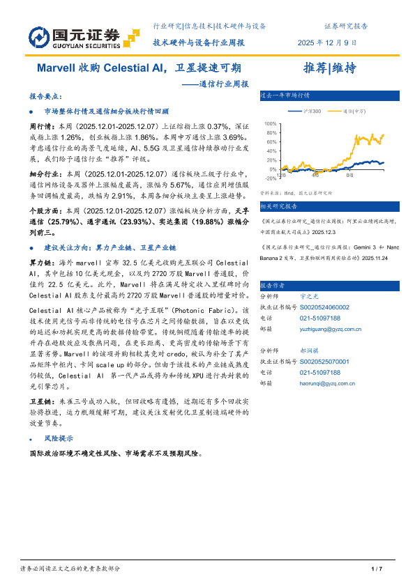 【国元证券】【202512】Marvell收购 Celestial AI,卫星提速可期-7页