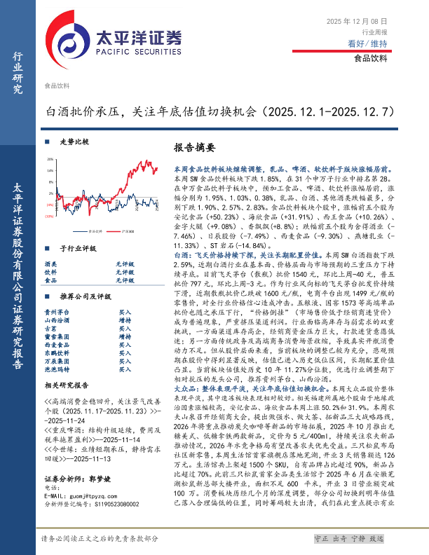 【太平洋证券】【202512】白酒批价承压,关注年底估值切换机会-9页