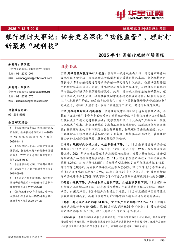 【华宝证券】【202511】2025年11月银行理财市场月报:银行理财大事记:协会更名深化“功能监管”,理财打新聚焦“硬科技”-15页