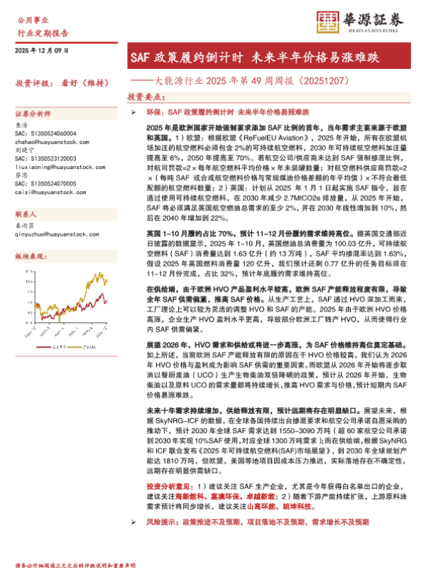 【华源证券】【202512】SAF政策履约倒计时未来半年价格易涨难跌——大能源行业 2025年第 49周周报(20251207)-9页